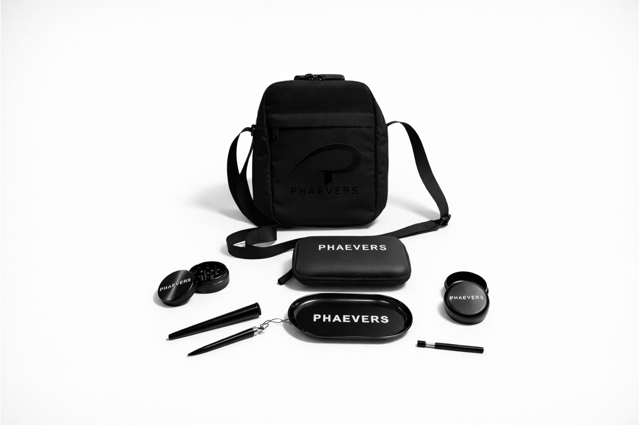 PHAEVERS SET Smell Proof Kit with Grinder, Tray, Jar, Cone Roller, Cone Maker & Pipe – All Black, 5.5x4x1 in
